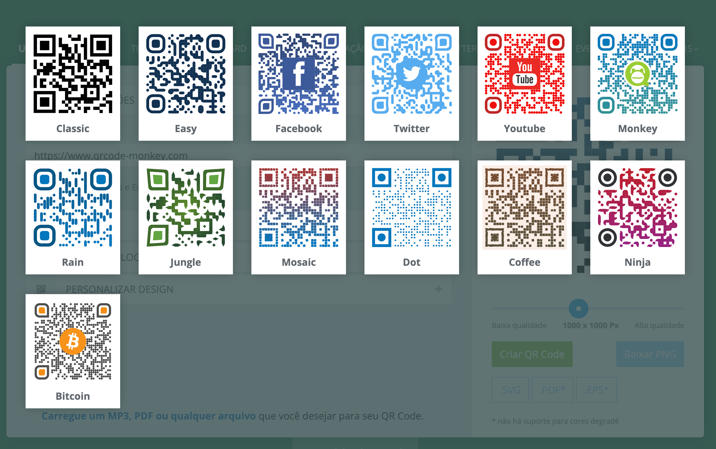 Depois de criado você pode salvar o QRcode em SVG, PDF ou EPS, além de baixar o tradicional PNG. Tudo isso gratuitamente.